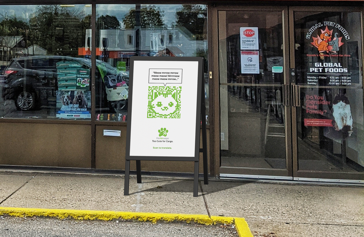We needed to expand the reach of the campaign, and what better way to do that than placing scannable signboards outside busy pet stores. Scanning the QR code will bring up the translated reviews.